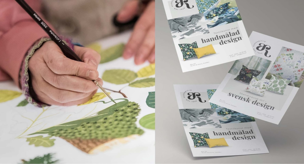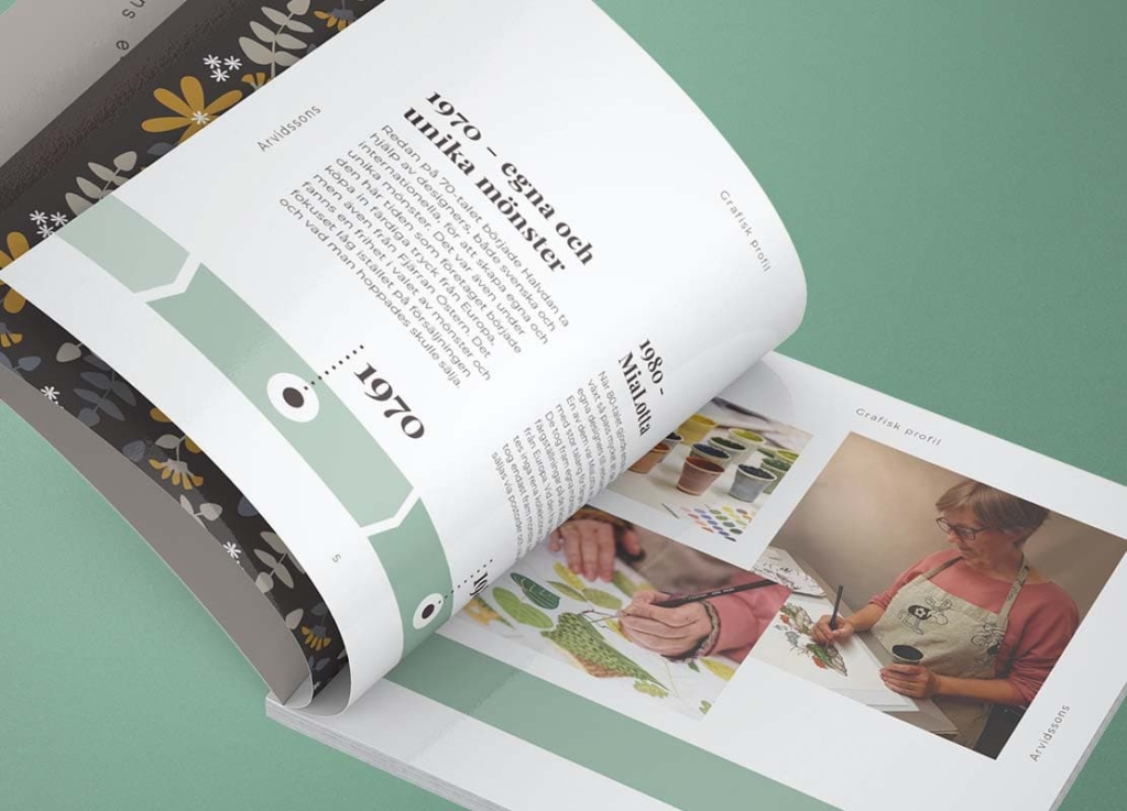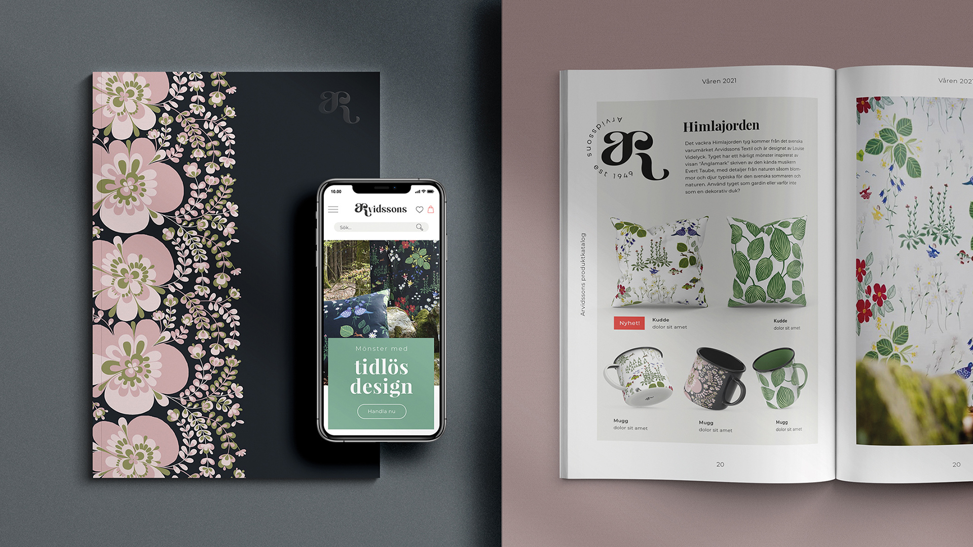 ”Jag har stor respekt för Arvidssons historia, hantverk och människorna bakom. Därför valde jag att sätta deras egna mönster i fokus. Därav blev designen clean, med en nedtonad färgpalett och eleganta seriff-typsnitt.”