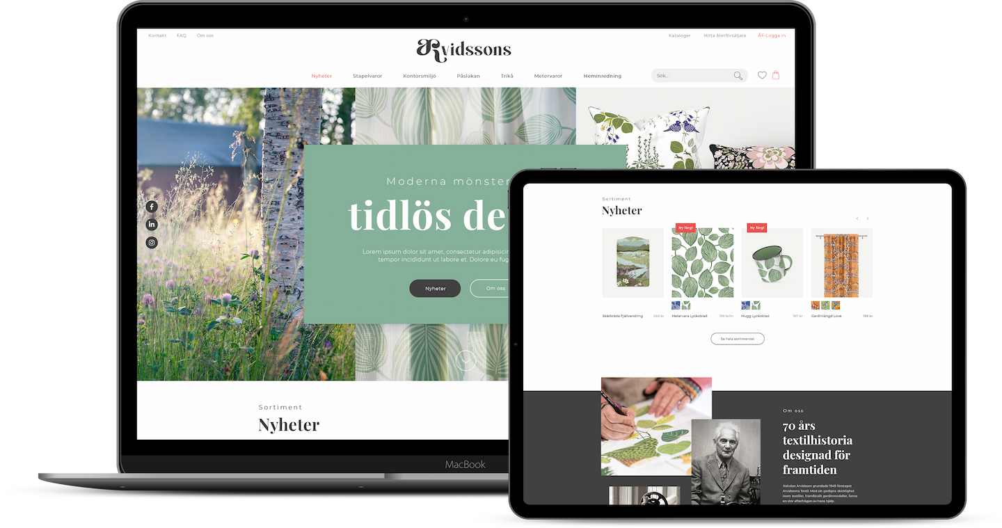 Arvidssons har nu förtydligat sitt varumärke med uppdaterad logotyp och ett helt nytt grafiskt formspråk. Vi har byggt en komplett e-handelsplattform som är integrerad med Arvidssons affärssystem. Det gör det möjligt att bedriva både D2C och B2B-försäljning med en hög ÅF-funktionalitet genom smarta integrationer.