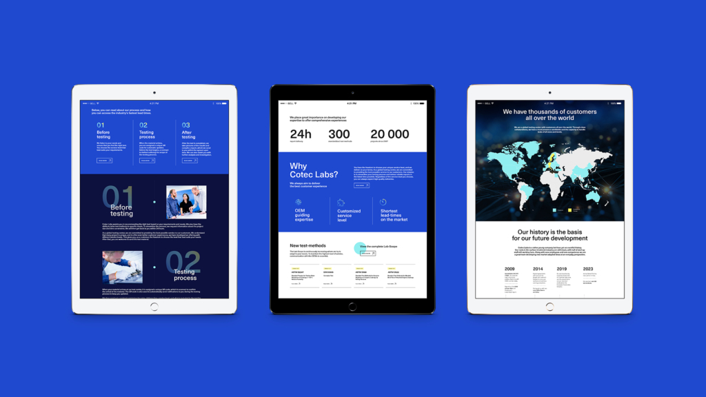 Efter en ny workshop med huvudfokus på webbens användningsområden och syfte påbörjades arbetet. Vi gick även igenom vad som var viktigast att lyfta i kommunikationen framåt. I samband med att vi spikat designen och börjat bygga plattformen skapade vi en kommunikationshandbok – en manual för hur Cotec Labs ska kommunicera sitt erbjudande oavsett kanal. Utifrån innehållet i den skrev vi texter till webben som på ett enkelt och tydligt sätt förklarar Cotec Labs och deras affär.