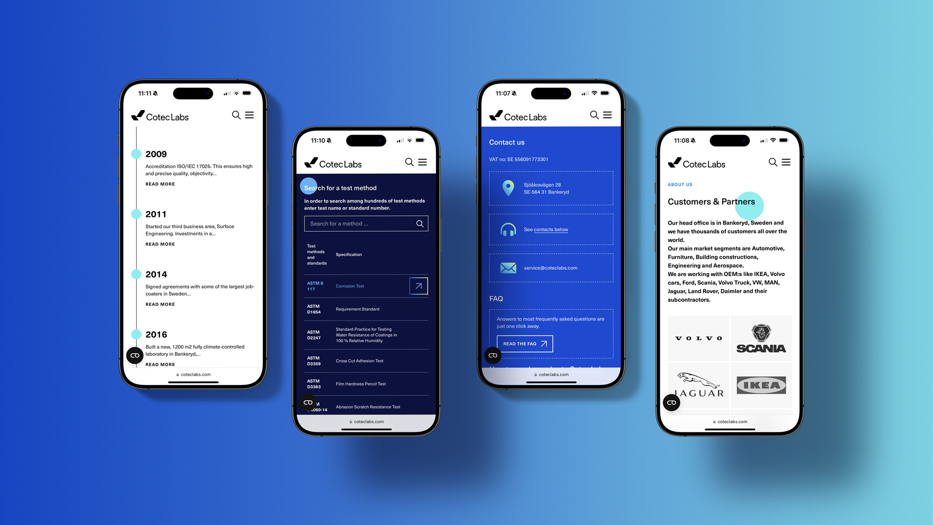 Cotec Labs är ett oberoende globalt testcenter specialiserat på korrosionsprovning och analys av ytskikt. Deras främsta fokus ligger mot OEM- och fordonsindustrin där de som godkänd OEM-leverantör samarbetar med företag som Scania, IKEA, Volvo och Ford.