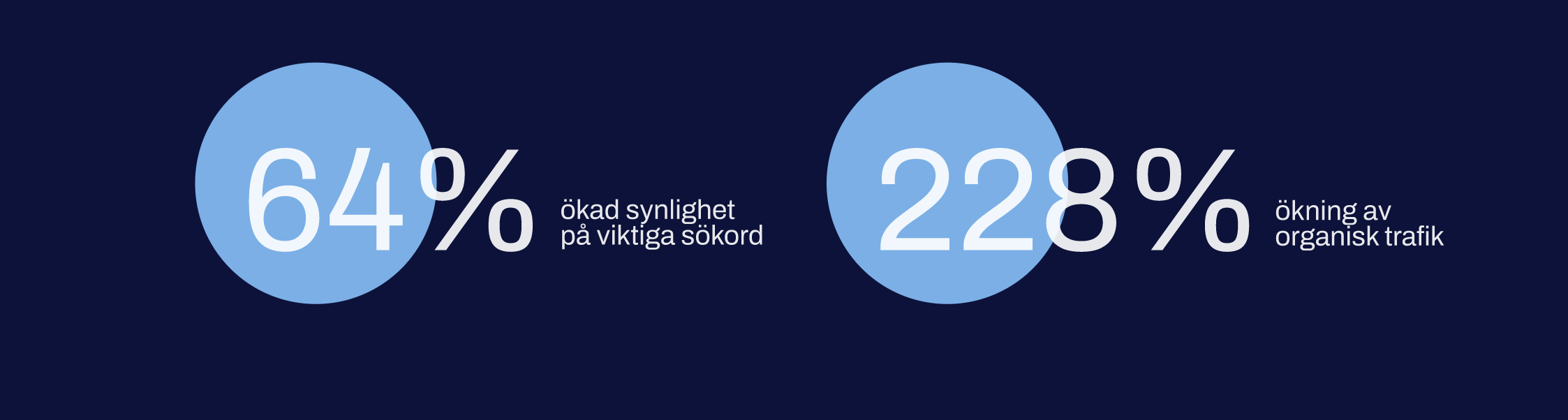 Vi startade vårt SEO- och Google Ads-arbete i februari 2023. Genom sökmotoroptimering lyckades vi öka synligheten på viktiga sökord med 64% de första 12 månaderna, vilket också gav en ökning på 228% av den organiska trafiken jämfört med året innan.